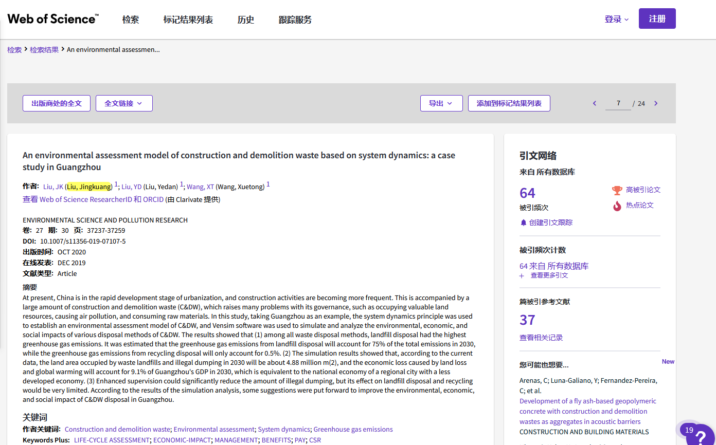 论文如下:Liu,JK,Liu,YD ,Wang,XT*. An environmental assessment model of construction and demolition waste based on system dynamics: a case study in Guangzhou [J]. Environmental Science and Pollution Research, 2020, 27,37237–37259.