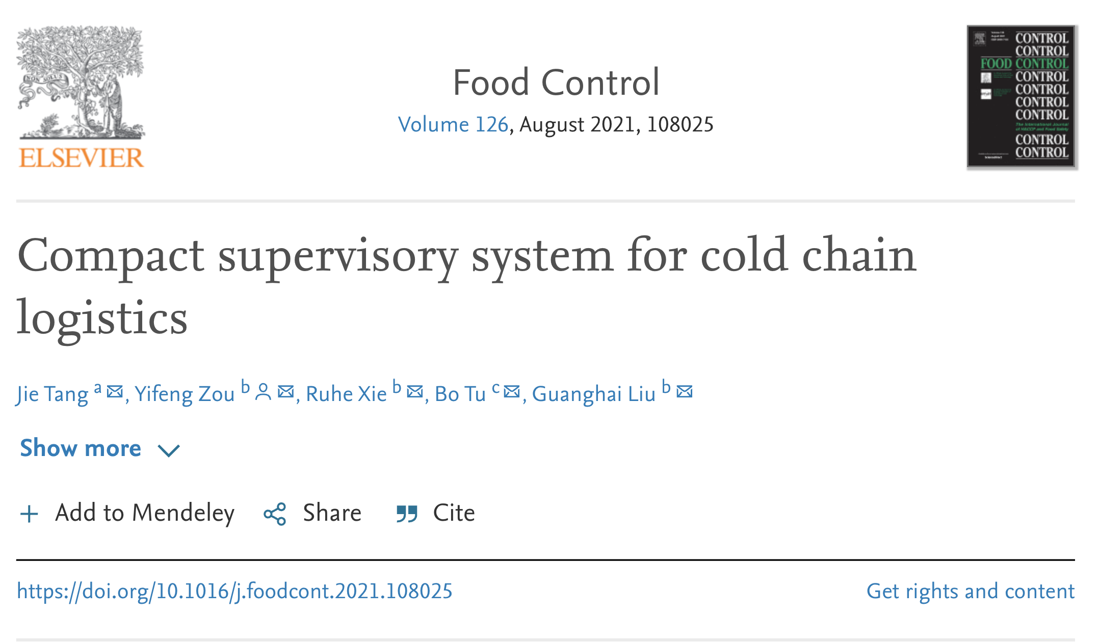 谢如鹤教授的博士后瑭杰博士发表了题为“Compact Supervisory System for Cold Chain Logistics”的论文。论文研究受到国家社会科学基金面上项目(17BJY102)的资助。