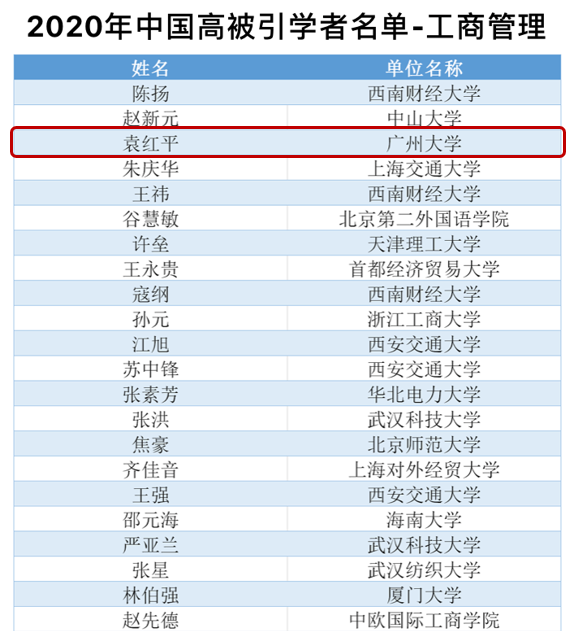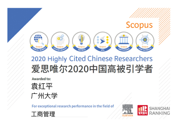 袁红平教授继2019年首次入选后,2020年再次入选工商管理学科高被引学者。袁红平教授的再次入选,反映了我校工商管理学科的快速发展与国际影响力。