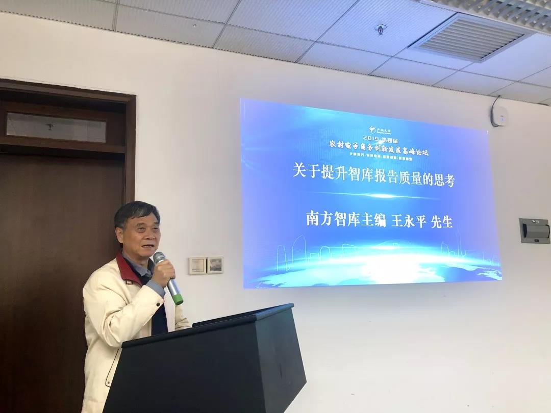 随后,南方智库主编王永平研究员发表了《关于提升智库报告质量的思考》的专题报告。王永平研究员表示智库研究是一个需要终身研究的课题,行业智库作为融合政府、行业和公众的三通连接器,重要作用和功能包括建言献策、理论创新、舆论引导和社会服务等。