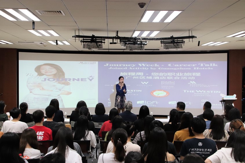 2019年4月11日,全球顶尖酒店管理集团——万豪国际酒店集团公司旗下十所酒店高层负责人莅临我校,与旅游学院师生共同组织了一场精彩的联合校园活动,主题为《踏上您的职业旅程——如何成为一名合格的职业经理人》。广州海航威斯汀酒店总经理兼万豪集团商务委员会广州分会主席林启聪先生、广交会威斯汀酒店总经理兼万豪集团华南区商务委员会餐饮负责人刘小峰先生与万豪集团旗下威斯汀、富力丽思卡尔顿、喜来登、广州W酒店等十所高档酒店高管齐聚一堂,与旅游学院师生面对面,展望行业发展前景、交流就业理念与实践、打造长期而深远的职业生涯规划。旅游学院党委书记刘向晖、副院长吴水田、副院长何向及两百余名师生参加活动。