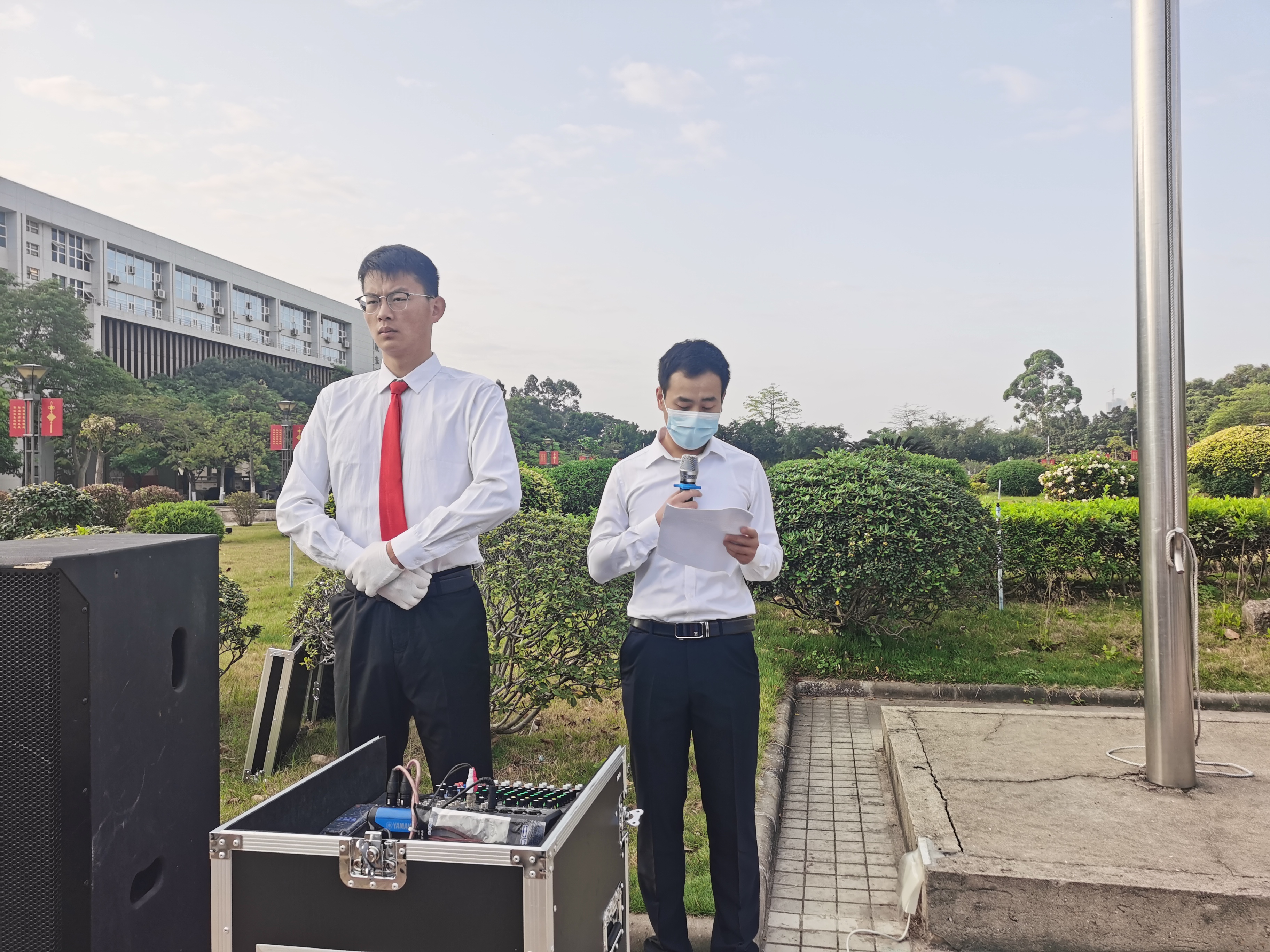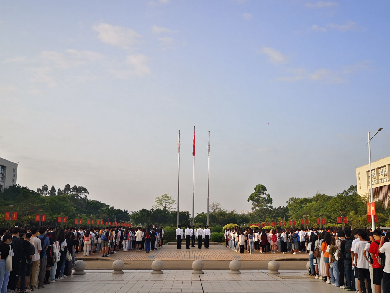 党委陈媛副书记、李炎焜副书记、2019级辅导员老师们及2019级本科生和大学城全体全日制研究生约一 参加了升旗仪式。