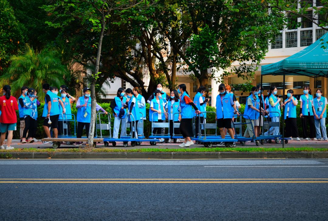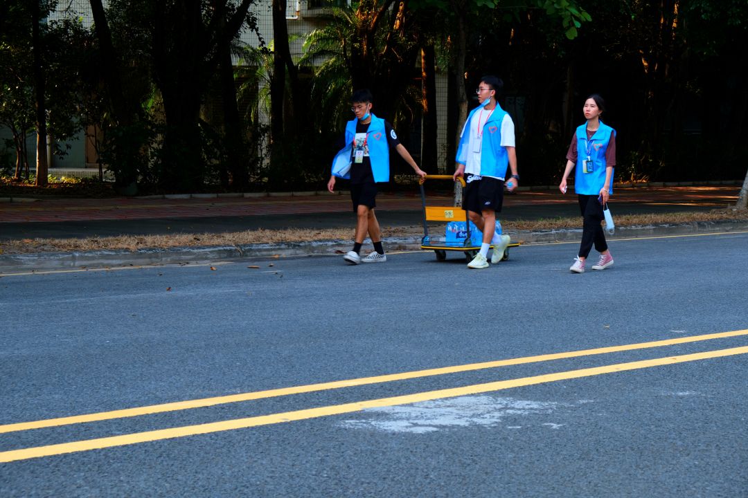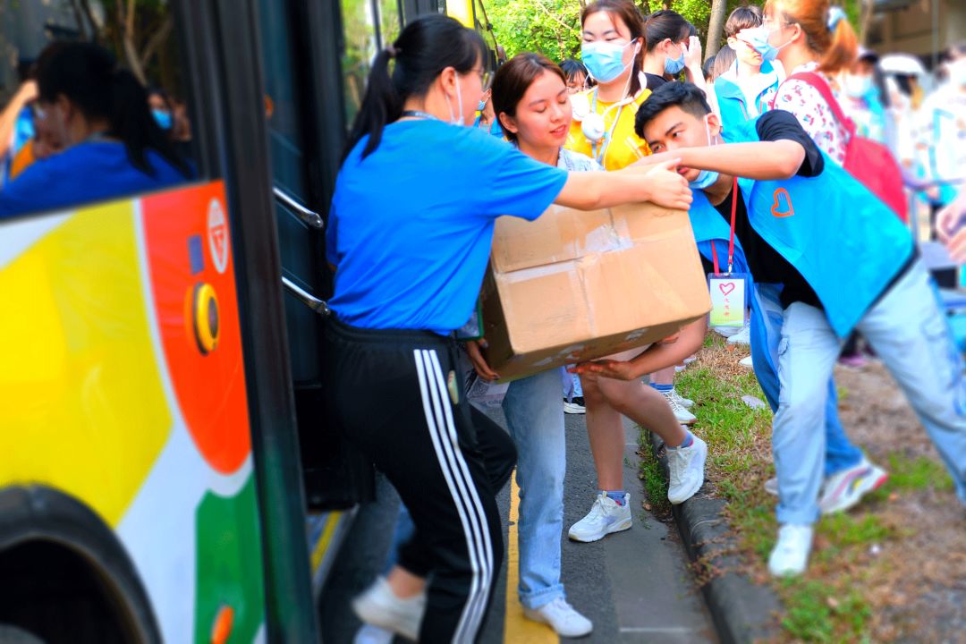 党委副书记张立老师和梁世健老师、谢灿杰老师、陈绮惠老师指导。在老师们细心不紊的指挥下,四批管院学子依次上车,整装待发。