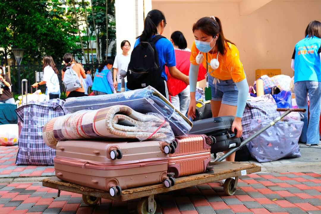 中午13:38分,我们最后一批“团友”顺利到达大学城。来到大学城校区,党委副书记陈媛老师和学工办曾梅华老师、邹婷老师、李佩雯老师有序指导搬迁工作。