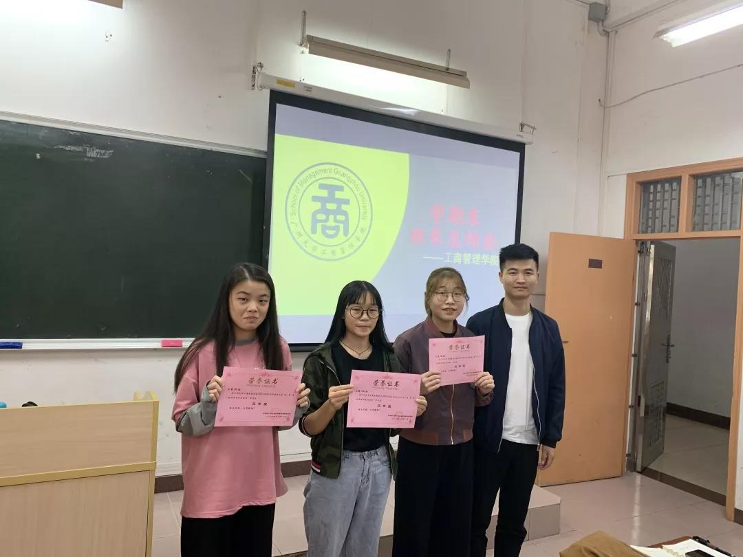 接下来,来自工商193班班长冯天龙与来自工商1910班的班长潘泽明在谢老师的鼓励下上台分享个人感受。班长冯天龙说当班长虽然难,有许多事情需要权衡利弊,但成功后会收获满满的成就感。他坚信,班长作为班级的领导核心,更应该以身作则,带好头,做好事。班长潘泽明则分享了他从一个没有任何学生干部经验,性格十分腼腆的学生转变到,“脸皮逐渐厚了起来”的班长的心路历程。最后,他激动地表达了对本班“更上一层楼”的整体发展态势的深深骄傲和自豪。谢老师借以上两位班长关于自我成长的经验,向我们呼吁:要做一个更加积极外向的人,重视每一次活动带给我们的锻炼。在心中树立起“不积跬步,无以至千里;不积小流,无以成江海”的定力与信仰。