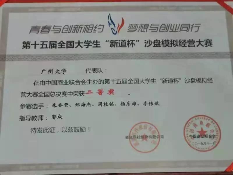 在第十五届全国大学生“新道杯”沙盘模拟经营大赛全国总决赛中,我们斩获佳绩,取得全国总决赛二等奖的荣誉。