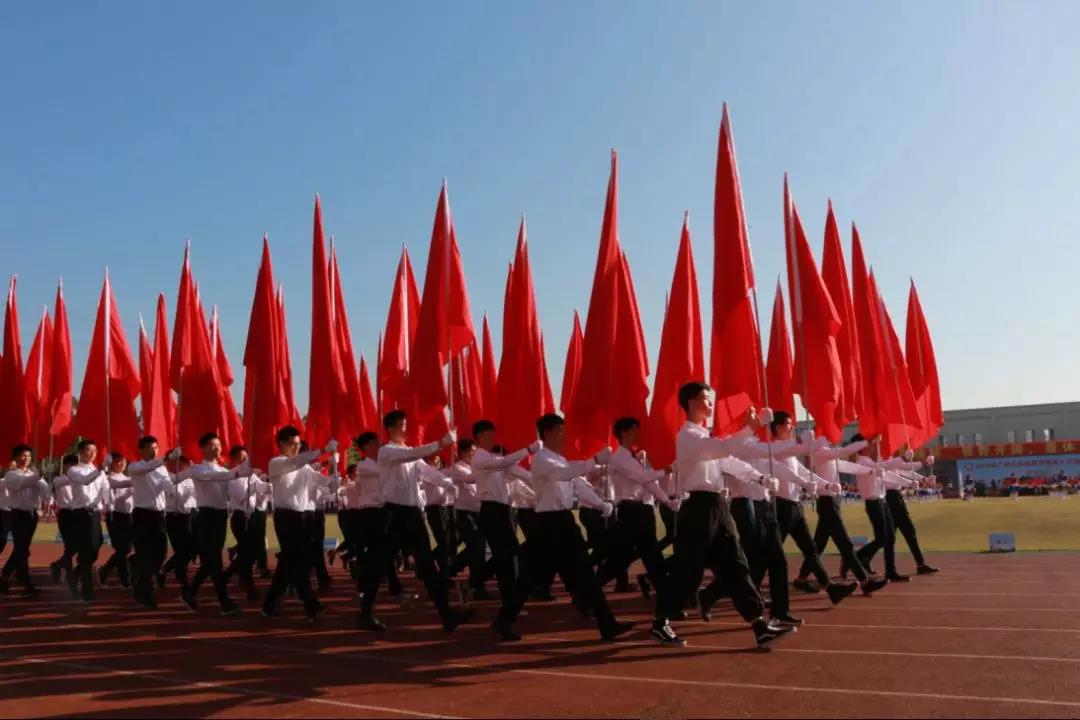 一个个方阵顺利入场后,庄严的升旗仪式,再次点燃了全体师生的热血。随风飘扬的国旗与校旗,五星与校徽交织起舞,听着耳畔的国歌与校歌,内心翻涌着爱国与爱校的热血。