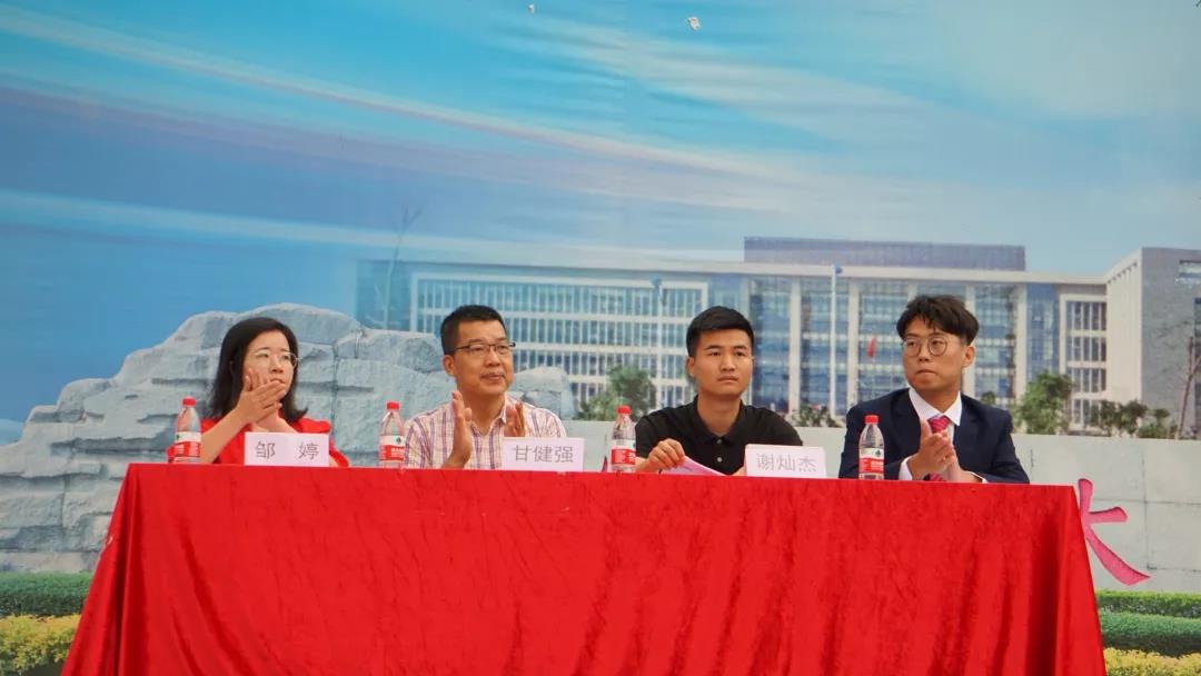 党委副书记甘健强老师,团委副书记邹婷老师,辅导员谢灿杰老师,学生会副主席殷春霖。