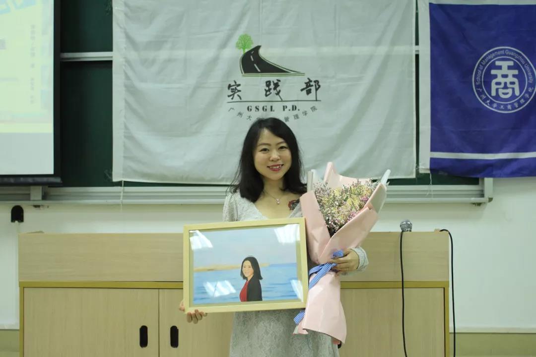 分享会的最后,实践部将带有师姐亲笔签名的暴走姐妹花旅行分享书《暴走姐妹花:满世界,找自己》赠与现场的青年代表,同时也给师姐献上了惊喜:鲜花和为师姐定制的人像铅笔画。