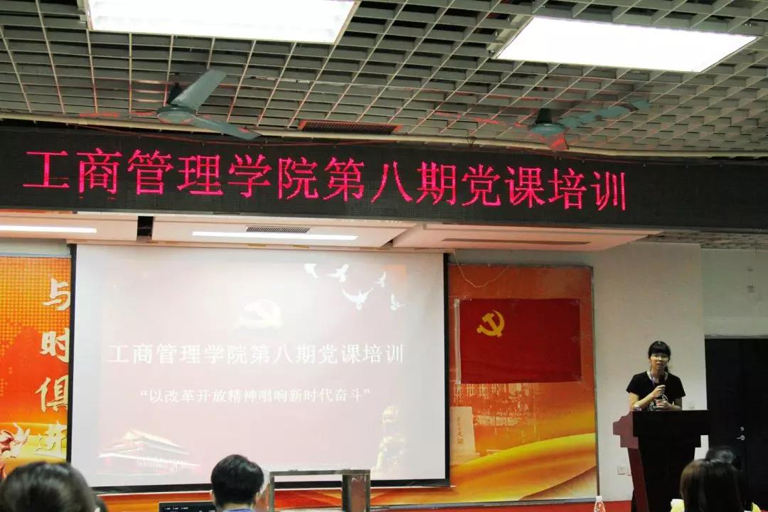 党委副书记甘健强和学工办主任曾梅华。在曾梅华老师为我们举行了简单而严肃的开班仪式后,甘健强书记以“学生党员成长之路和党支部工作条例”为主题正式开讲。