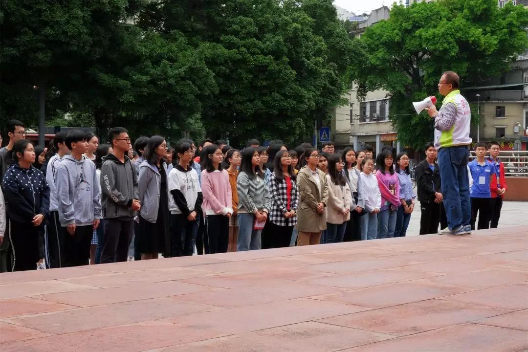 甘老师又指向广场旁的一栋蓝色大楼,我们得知那便是当初召开团一大的地方。老师接着介绍到,当时广东代表综合了各方面的因素,在其他代表的不满中仍提出更改团一大召开地,而后又获得了中央的支持,团一大的召开地才从上海改为广州。无论是当年广东代表的表现,还是广东省在改革开放中的成就,亦或者是广州大湾区的开发,都体现了一种广东精神:勇于争取,敢为人先。甘老师希望我们作为新世纪的广东青年,能铭记并传承这种精神,努力寻求发展。