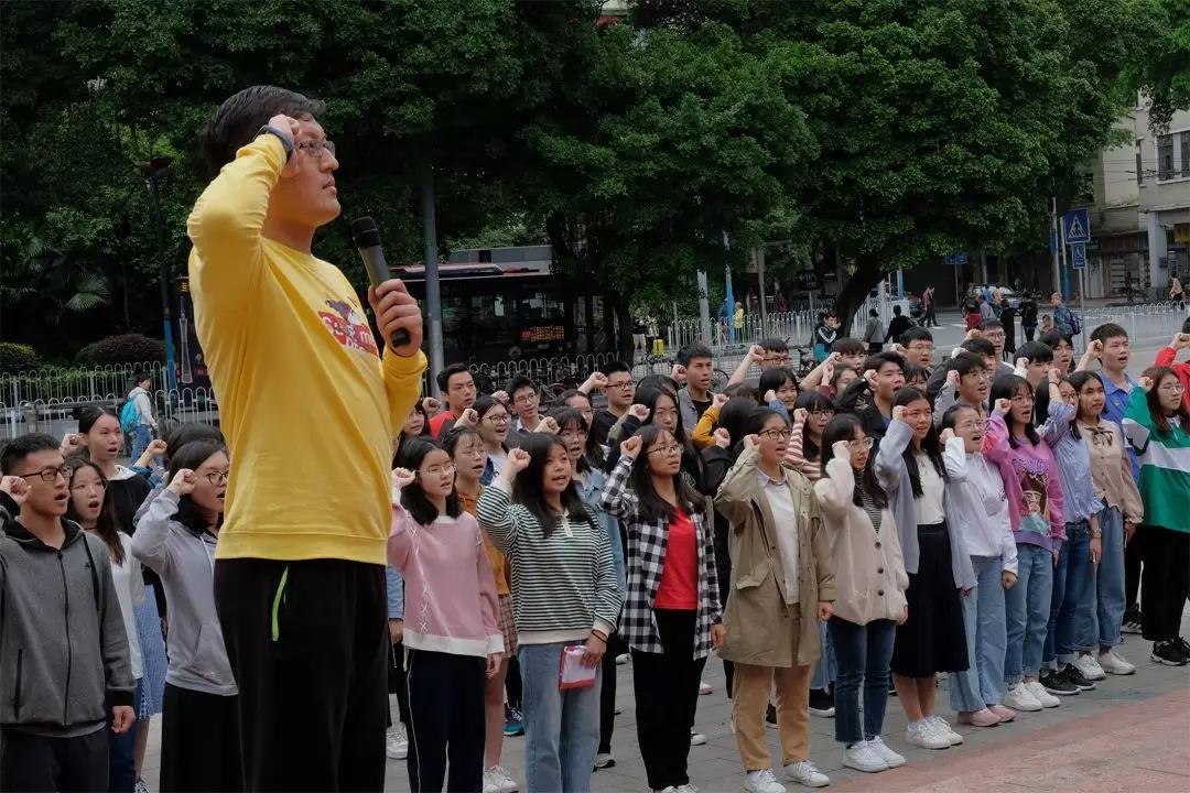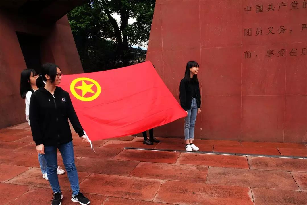 了解了团一大与广场的历史后,上午10:10,周云老师带领着同学们在纪念墙前、团旗下进行青年宣誓。