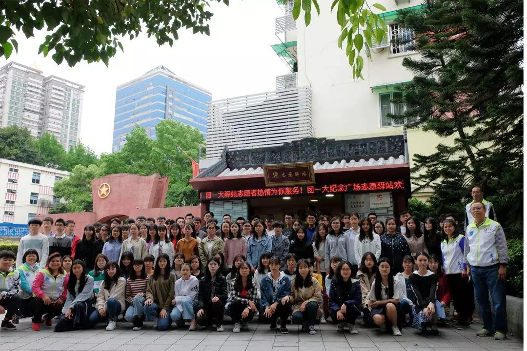 随后我们参观了团一大广场的志愿驿站——广州市最大的志愿驿站,共有32名党员以及15名团员在此服务。驿站拥有着为人民服务的意愿,还有着专业技能的志愿者,职业涵盖工程师、律师和教师等等。驿站具有多项功能:每个月进行募捐,将所筹物资捐赠给贫困山区或者流浪者、关爱残疾人、给予大中小学生参与志愿服务的机会等。参观时,我们还遇到了每个周末来此义诊的来自广州医科大学的学生。