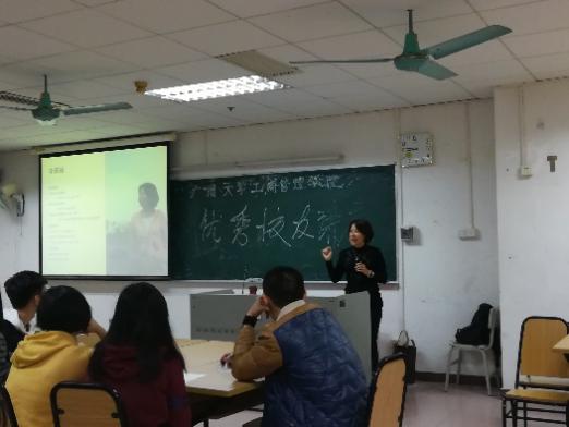 组织开展的以“其实你也可以很有创意”为主题的优秀校友会讲座在桂花岗校区顺利举办。本次讲座邀请了优秀校友——李苑薇作为主讲人,学院党委副书记甘健强老师主持了本场讲座。辅导员梁世健老师以及2017级五十多名学生参加了活动。