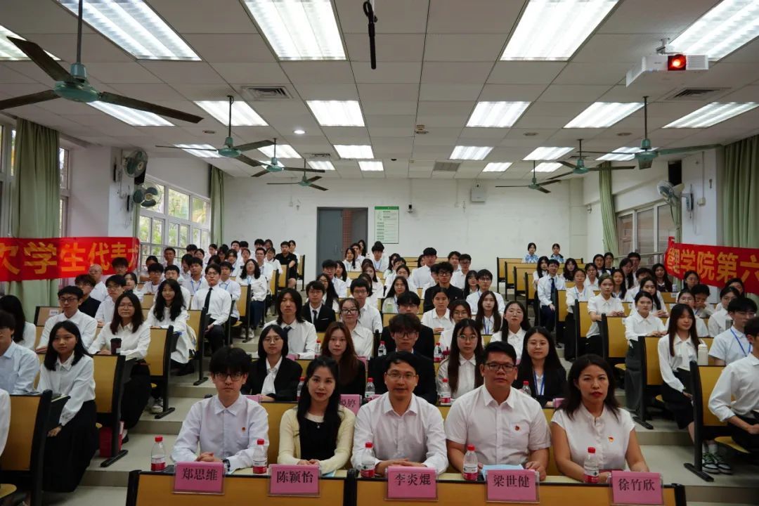 第六次学生代表大会在大学城理科南110顺利召开,会议分为预备会议和正式会议两部分进行。学院党委副书记李炎焜、团委书记梁世健、团委副书记徐竹欣、团委副书记陈颖怡,校学生会主席团成员郑思维同学,学院学生会第五届委员会委员以及学院各代表团成员出席了会议。