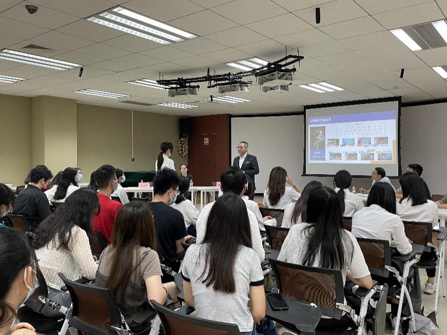 (图1 广交会威斯汀酒店总经理萧振雄先生作职业经验分享)
