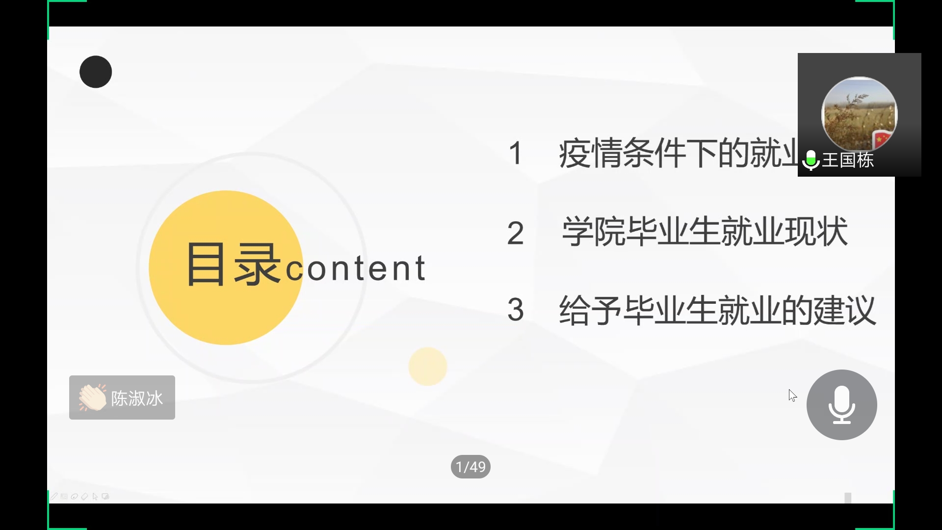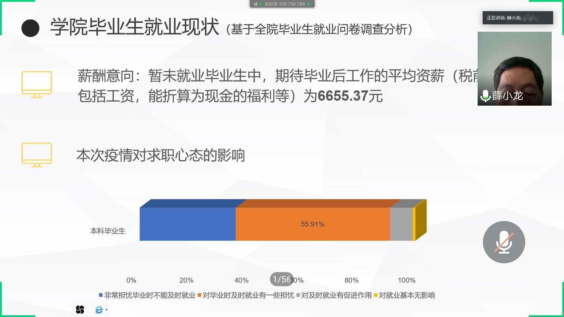 薛小龙院长及王国栋书记深入联系未就业毕业生,通过腾讯会议分场组织召开2020届未就业毕业生座谈会,会议由党委副书记甘健强副书记主持,毕业班辅导员孙碧菡老师及未就业学生参加座谈会。
