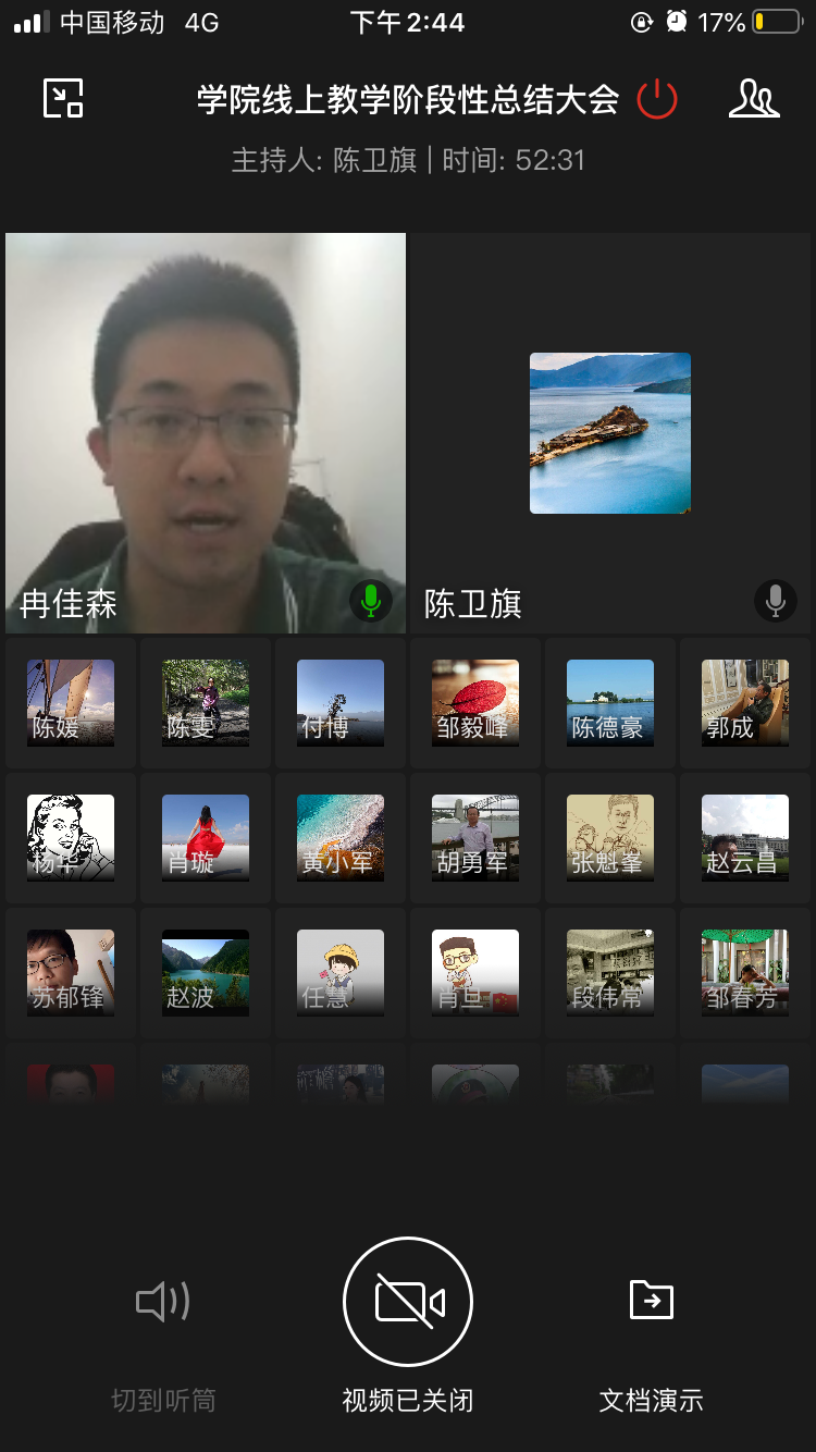 通过企业微信召开全院教师的线上教学阶段性总结大会,党委书记王国栋、副书记甘建健强、副院长袁红平参会,会议由教学副院长陈卫旗主持、总结学院线上教学筹备、运作实效和后续工作进行部署。系主任代表张魁峯教授、教师代表冉佳森博士、校督导佘立中教授分别介绍不同课程的线上教学设计和授课的优秀经验、督导巡课的问题发现和对策检验。王国栋书记对全院教职员工在疫情期间进一步提高师德师风水平、做好表率提出工作指示。