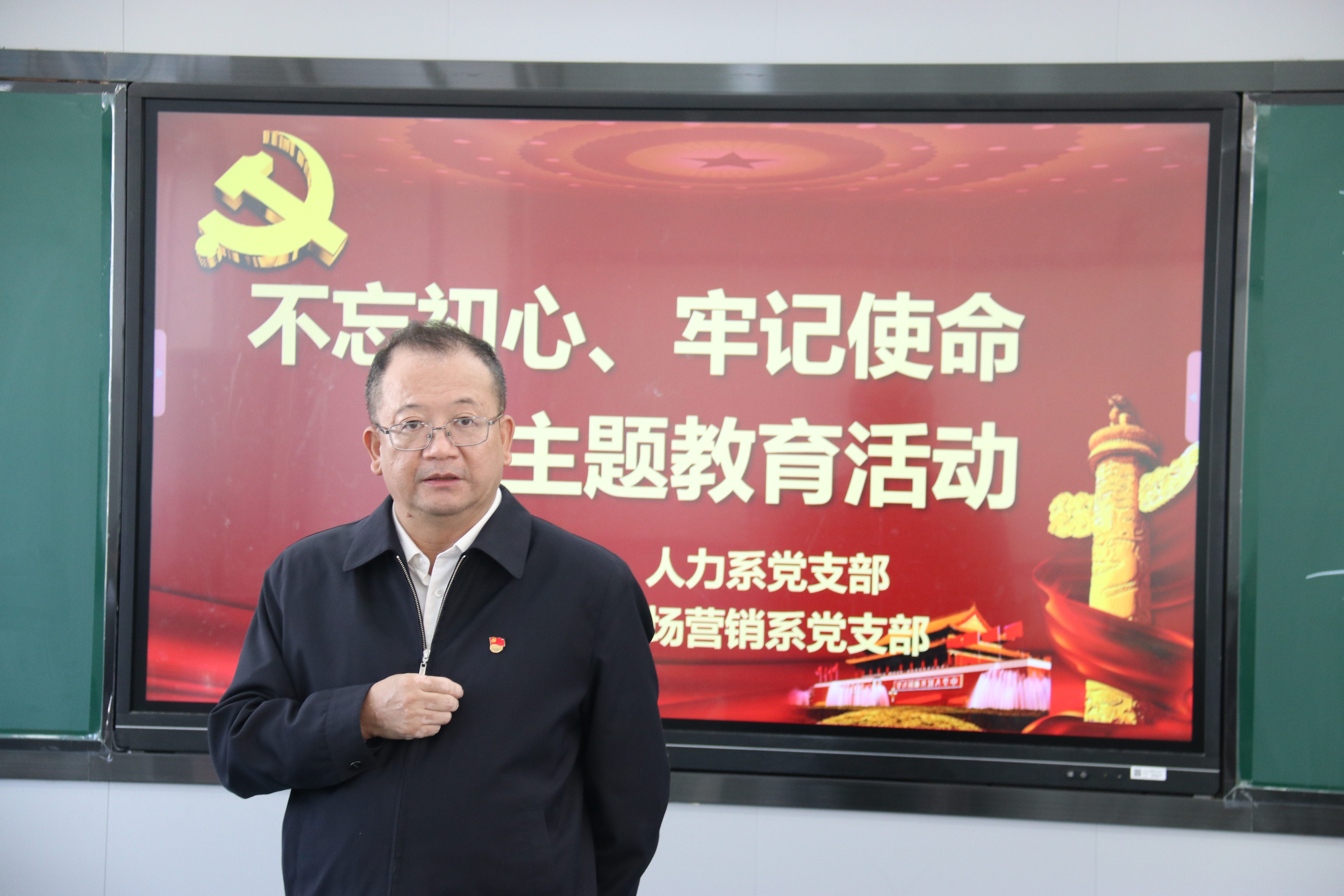 人力资源系党支部与市场营销系党支部联合开展的“不忘初心、牢记使命”主题教育暨党员知识竞赛活动在理科南楼617举行,校党委书记屈哨兵同志作为联系校领导出席了党日活动,学院党委书记王国栋同志和院长薛小龙同志应邀参加了本次党日活动。