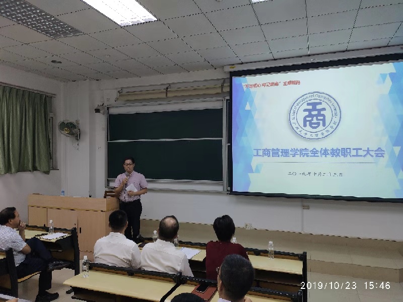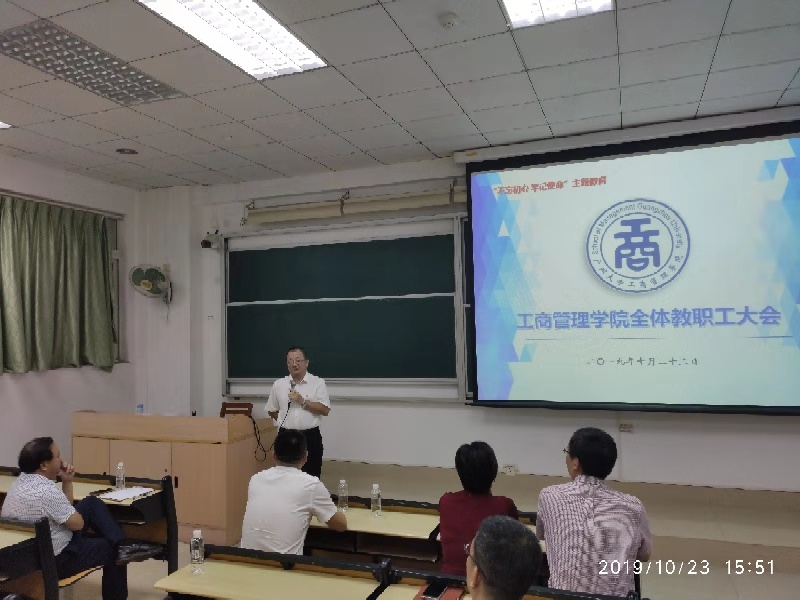 10月23日下午,在校组织陆财深部长的陪同下,校党委屈哨兵书记亲临学院出席在文清楼110举行的全院教师大会。会议由薛小龙院长主持,会上陆财深部长宣读了校党委关于捷克论坛