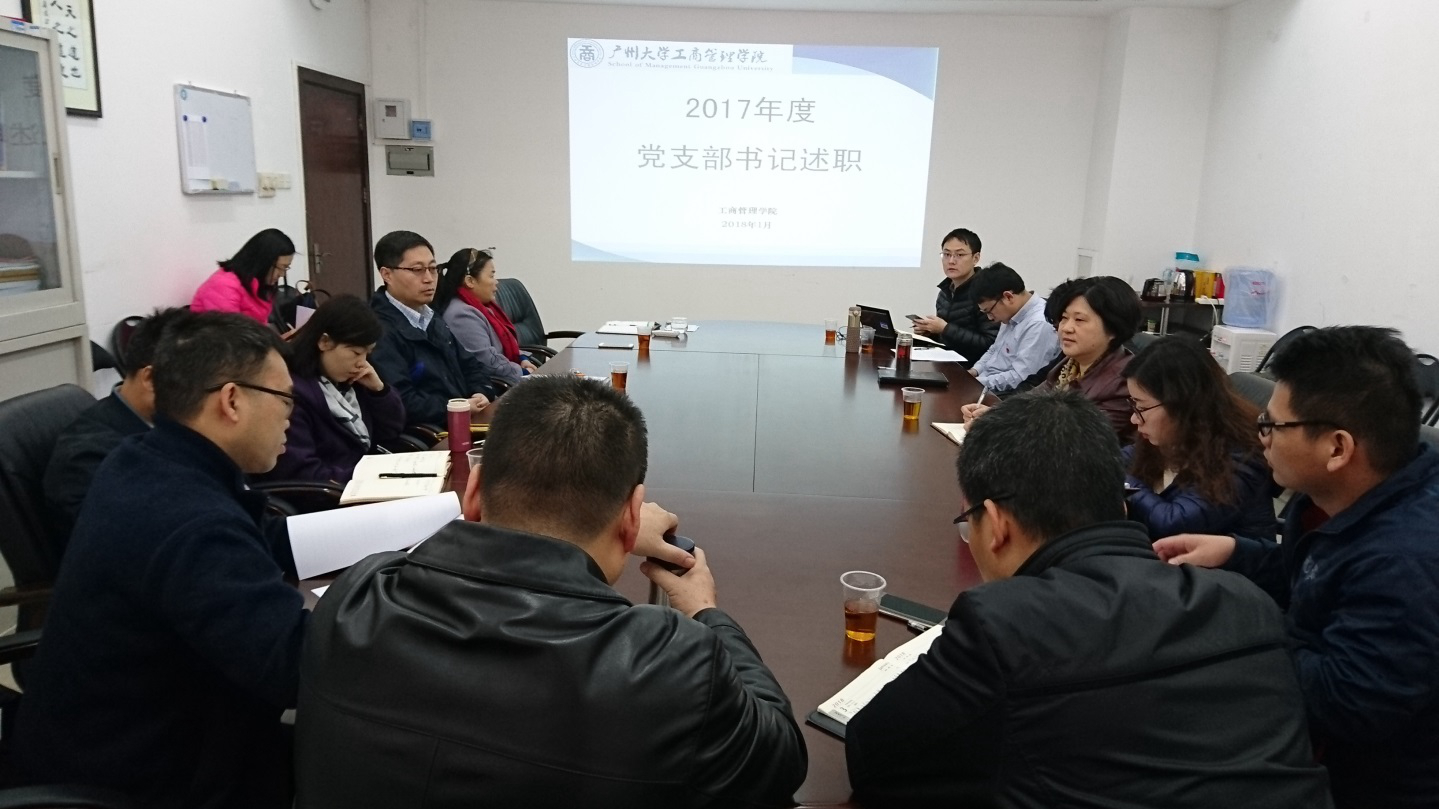 学院4名教工党支部书记和4名学生党支部书记从学习宣传贯彻党的十九大精神情况、履行党建责任情况、推进基层党建工作情况、开展思想政治工作情况、整改突出问题和改进措施情况等五个方面轮流向学院党委进行了汇报。汇报既总结了2017年支部工作的主要亮点和特色,用事实和数据说话,也对照考核内容梳理了存在问题,针对问题提出下一步的努力方向。