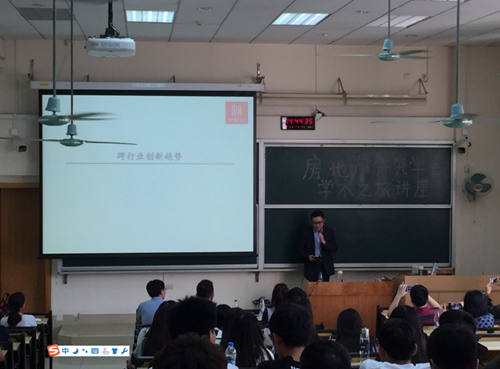 为房地产开发与管理专业学生作了题为《跨行业创新趋势》的学术讲座。学院王学通副院长及房地产专业师生参加了学术交流会。