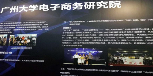 该论坛作为2016华南电商博览会暨两岸三地跨境电商博览会的重要论坛之一,受到了广东省政府领导和团省委的高度重视,共开辟了三个展台展示高校电商创客创业的研究成果。而在全省众多高校之中,我校电子商务创新创业成果脱颖而出,和暨南大学、广东财经大学分别获得了三个宝贵的高校展台,并利用了该展台充分展示了我校电子商务研究院产学研合作的最新成果和风采。