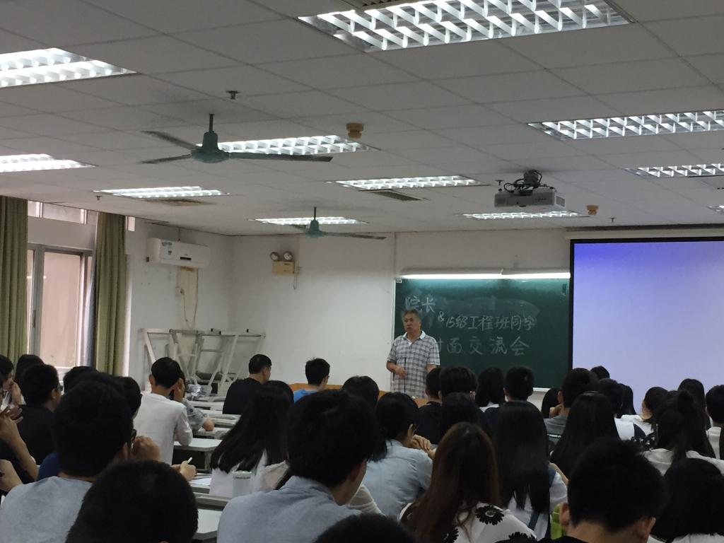 院长庞永师教授如约来到桂花岗校区综合楼北407与工程管理专业15级新生召开面对面交流会。学院党委副书记孟强老师和团委副书记邹婷老师陪同前往参会。