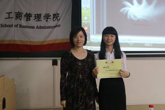 2015年社会实践活动先进集体和先进个人的决定》,并在统计6支队伍评审得分后进行隆重的颁奖仪式。荣获优秀论文奖的陈俏吩同学上台发表了激情洋溢的讲话,她提到,社会实践是一个开拓视野、提升自我的一项有意义的活动,希望捷克论坛