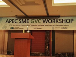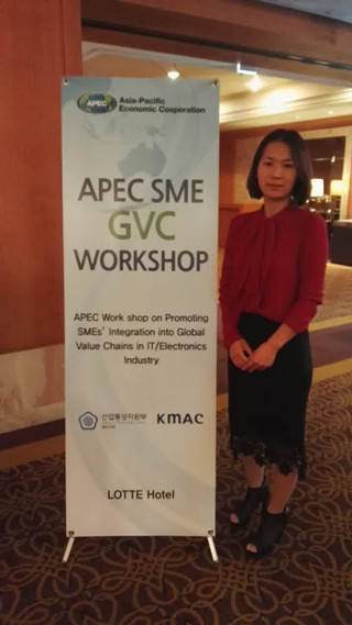 青年教师詹茜博士受亚太经济合作组织和韩国产业通商部邀请参加了本次论坛,并作为中国唯一代表,在会上发表了“Promoting SME’sintegration into Global Value Chain in IT/Electronic industry”(IT电子行业中小企业融入全球价值链的路径策略)主题演讲。
