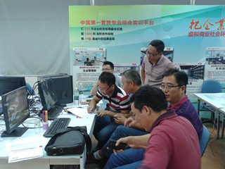 最后参会老师在经济管理实验室进行虚拟商业社会环境VBSE创业版之商业模式课程体验。