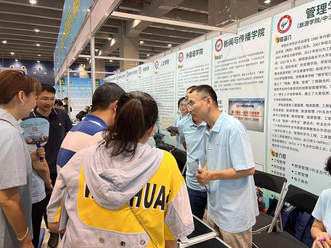 主动出击,积极组织学院师生开展招生宣传。采取了线上线下相结合的方式,录制了旅游管理(中外合作办学)“中法项目”的招生宣传视频,参加了中外合作宣介展,并在哔哩哔哩网站上进行宣传;参加了三个高考招生宣传展和一个校园开放日,组织了二十多场对接中学的招生宣传活动,吸引了众多学子前来了解相关报考信息,得到各个中学、考生与家长的热烈欢迎!