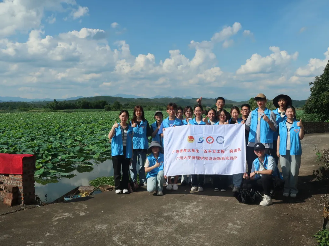 以“双百行动”和“青年大学生百千万工程突击队”相结合,由院党委牵头,聚合学院师生力量,形成了一支电商&旅游专业教授、科技农村特派员和院团委带领团学骨干、电商&旅游等专业学生组成的实践团队——浛洸新彩实践团。