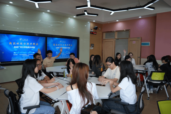 院士大讲堂结束后,电商师生受益匪浅、意犹未尽,继续走进课室以小组为单位围绕院士讲座展开热烈讨论。目前我校电商专业已经形成以院士高端引领、师生深度参与、OBE理念指导下的“专家大讲堂—教师小课室—学生研讨会”的多层次闭环自反馈的互动式的教学研讨模式。