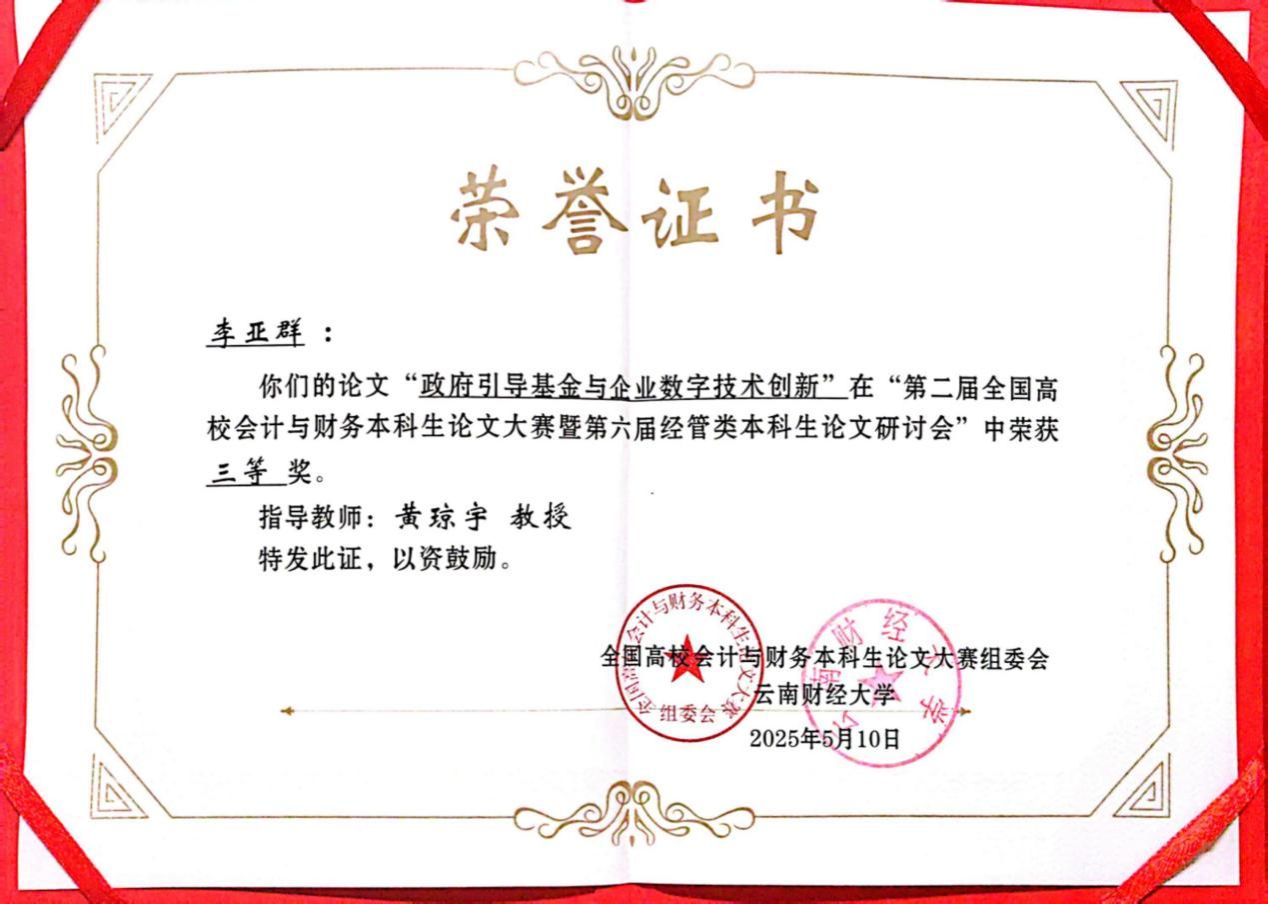 2021级本科生李亚群参加会议并进行了论文汇报,其论文荣获“三等奖”。