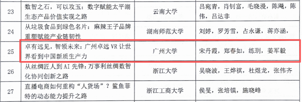 再创佳绩,共有两篇案例成功入选“百优”。其中,宋丹霞老师团队完成的《卓有远见,智领未来:广州卓远VR让世界看到中国新质生产力》,聚焦于虚拟现实产业的前沿实践,呈现了企业如何以战略眼光和技术创新实现新质生产力的跃升;刘晓燕老师团队完成的《喜鹊设计:笑容,从脸上到心里》,以关注社会价值创造为切口,展现了设计企业如何通过服务创新提升顾客体验与心灵关怀。两篇案例紧扣中国企业管理实践中的新趋势,兼具理论深度与教学价值,获得专家评审高度认可。