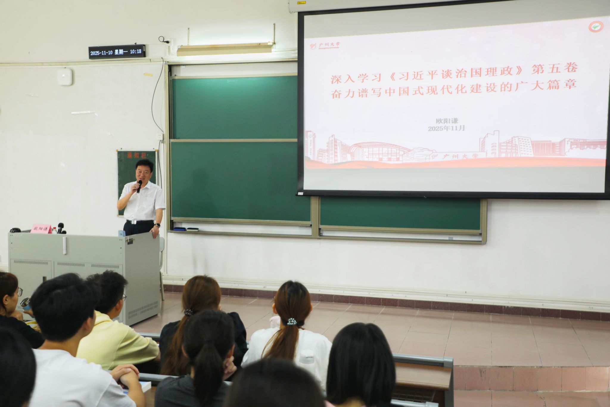 授课过程中,欧阳谦引导同学们深入学习《习近平谈治国理政》第五卷,同时真诚分享了对大学生涯规划与个人成长的宝贵建议。