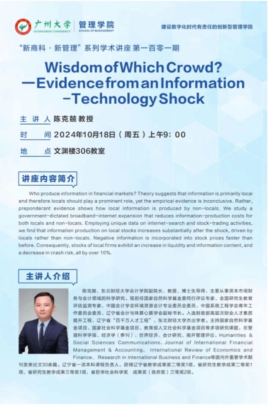 下一篇: “新商科·新管理”系列学术讲座(第100期)--构建中国特色公司财务会计研究与创新的若干思考