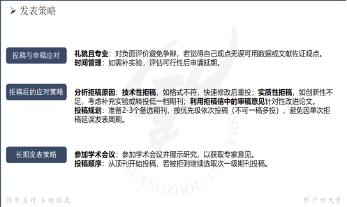 论文发表策略包括:投稿与审稿时,要礼貌专业,面对负面评价可用数据文献佐证观点,需补实验时合理评估并申请延期。遇到拒稿时,先分析原因,技术性拒稿(如格式问题)快速修改重投,实质性拒稿(如创新性不足)可补充实验或转投低一档期刊,提前准备 2 - 3 个备选期刊按优先级投稿,避免延误发表周期。长期来看,也可参加学术会议展示研究成果,获取专家意见,投稿可从顶刊开始,被拒后选次一级期刊 。